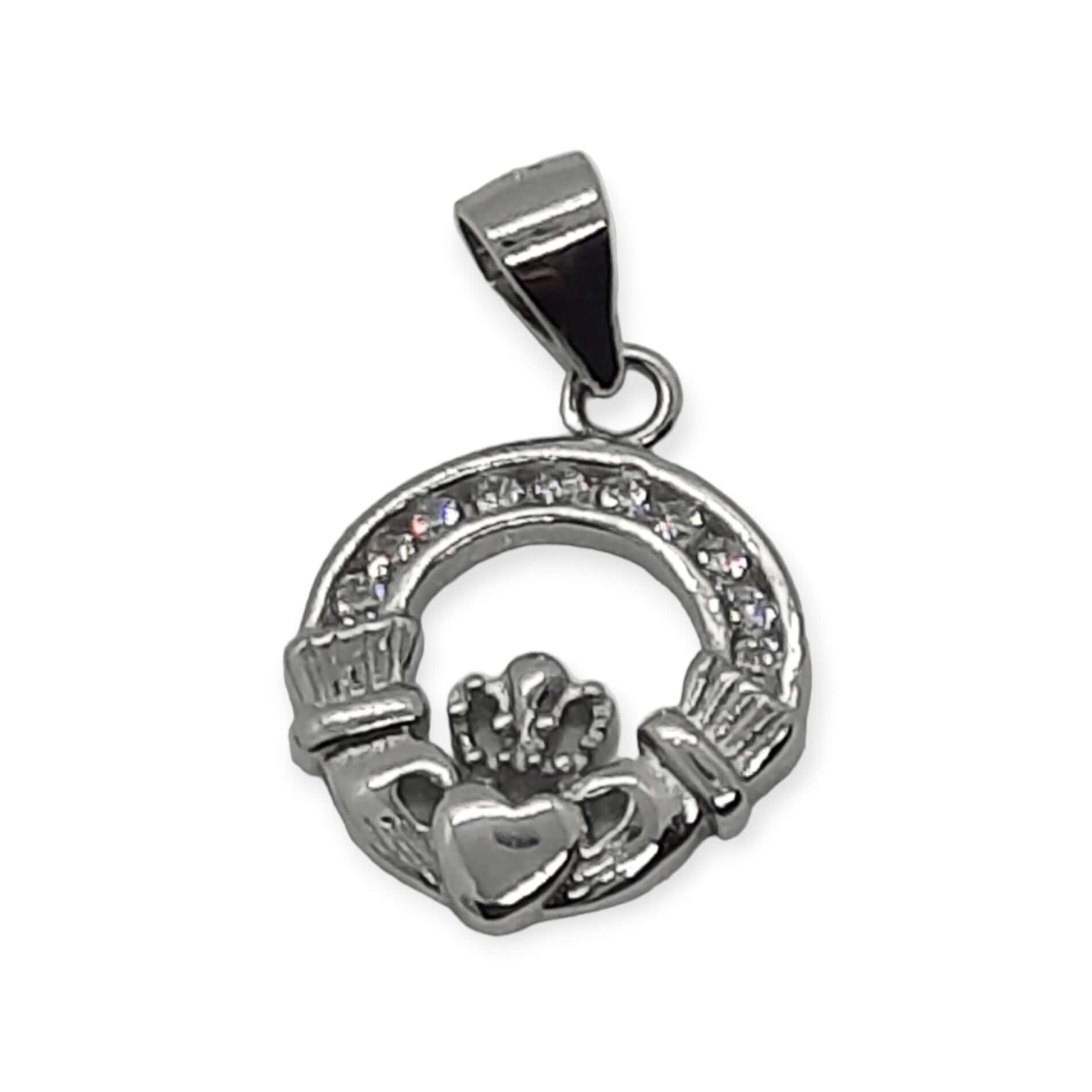 Claddagh Pendant Necklace Charm – Sterling Silver with CZ