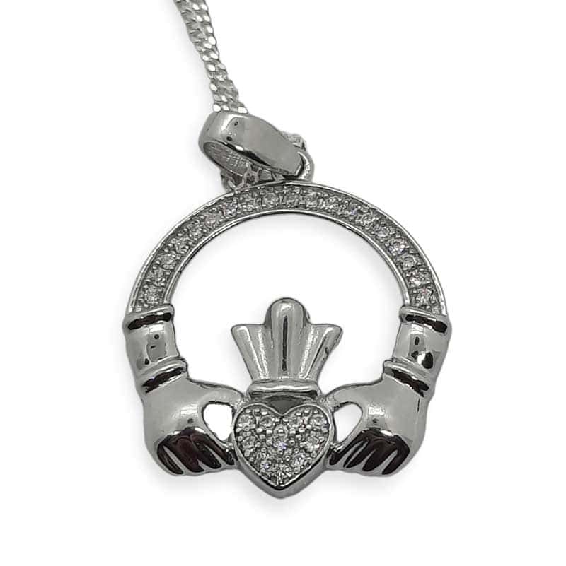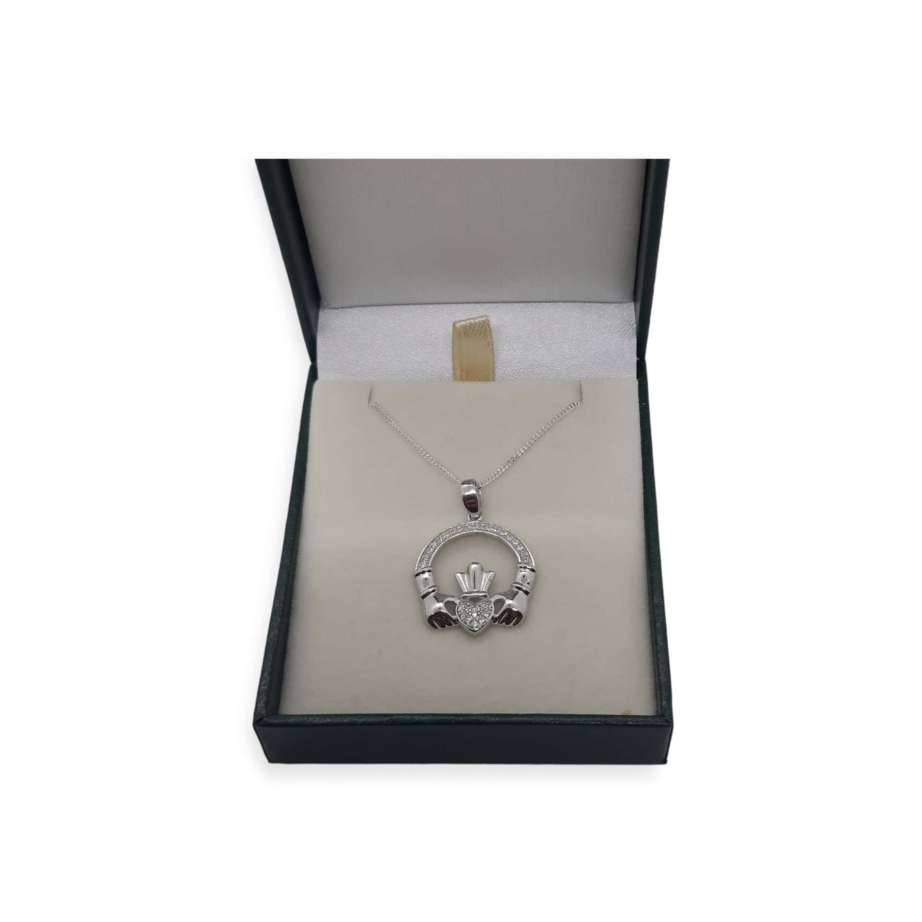 Claddagh Pendant Necklace Large – Sterling Silver with CZ