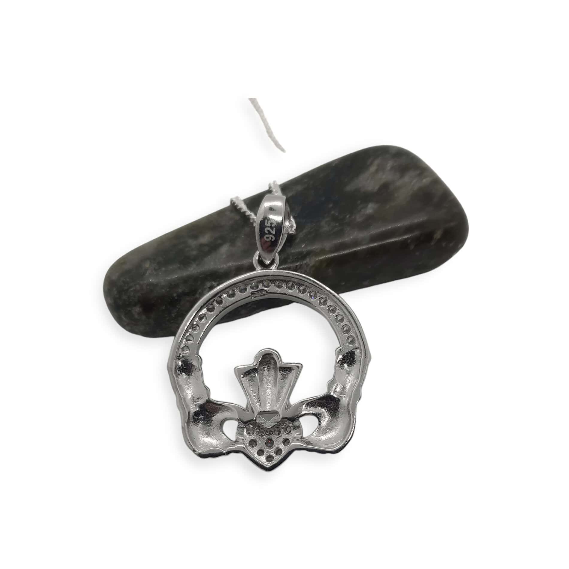 This is a large size Claddagh Pendant Necklace – Sterling Silver with CZ