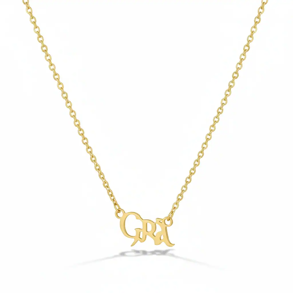 • Gold-plated sterling silver necklet with the Irish word “Grá” (Love)