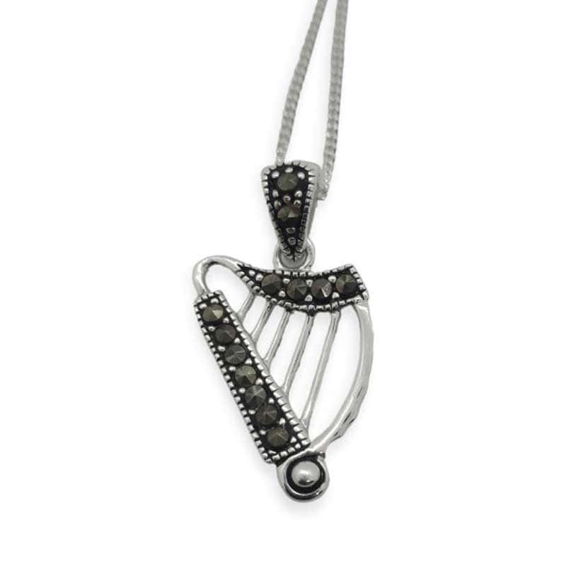 Sterling Silver Irish Harp Pendant with Marcasite Detail