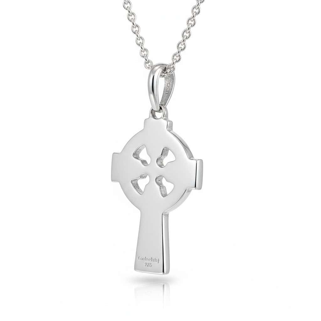 This delicate Sterling Silver Celtic Cross Necklace is a timeless expression of Irish faith and heritage. The Celtic Cross, with its distinctive circle, represents the Circle of Life or Eternity, while the finely etched Celtic knots symbolise Strength and Protection.